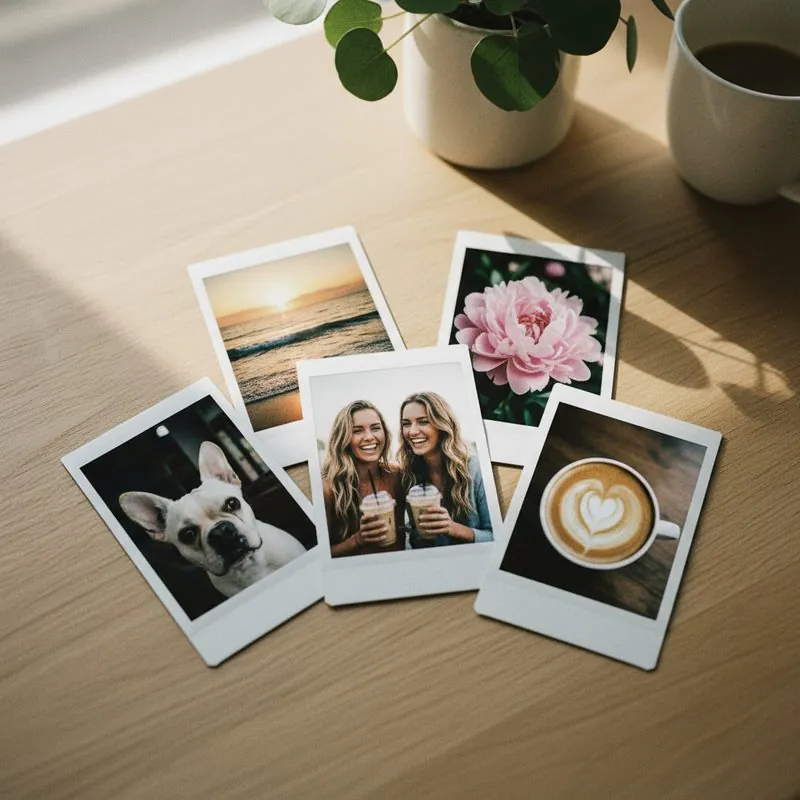 Turn your phone photos into real instant film prints on genuine Instax film. Pick your favorites, choose a style, and we ship them to your door. No camera needed.